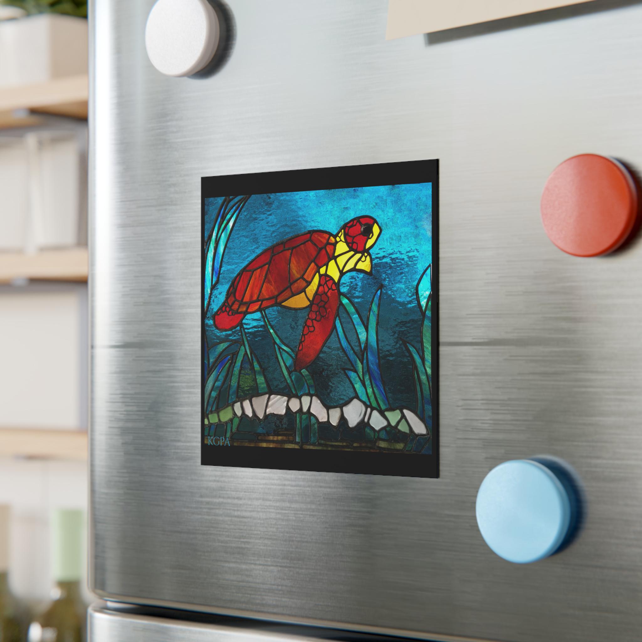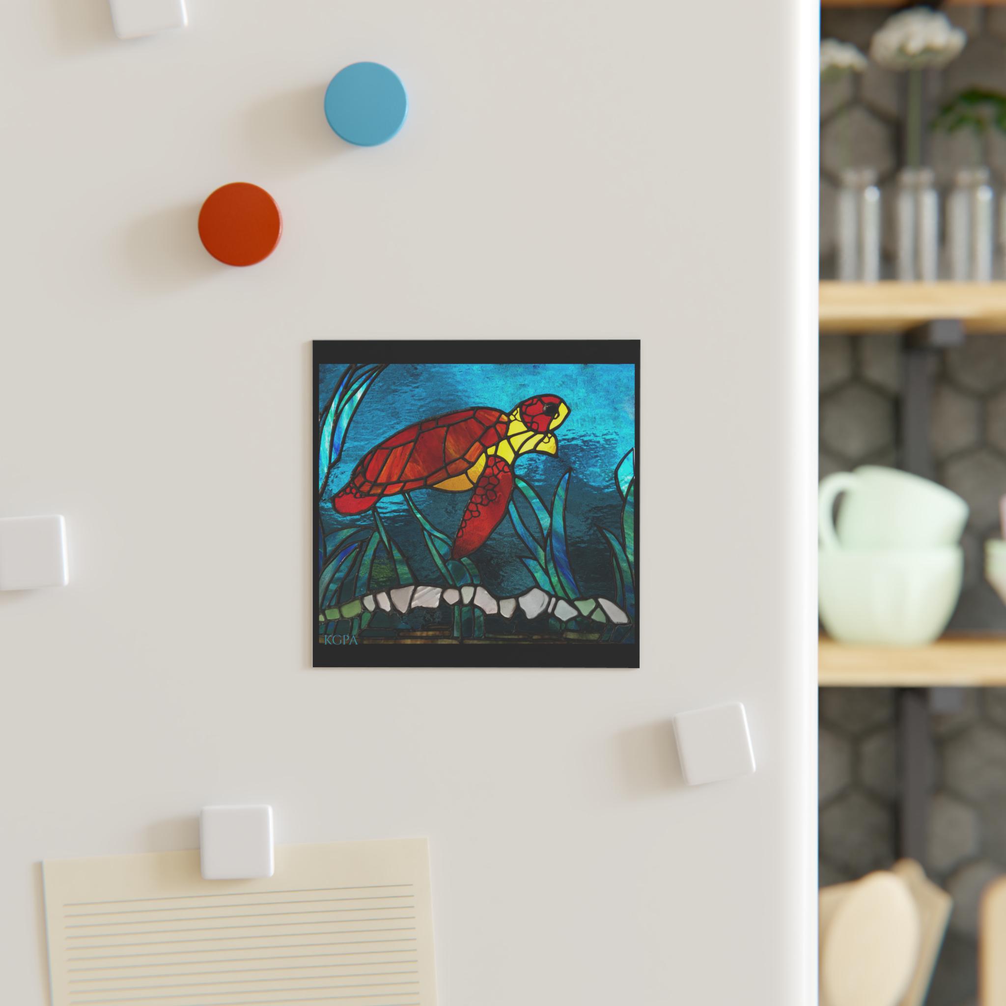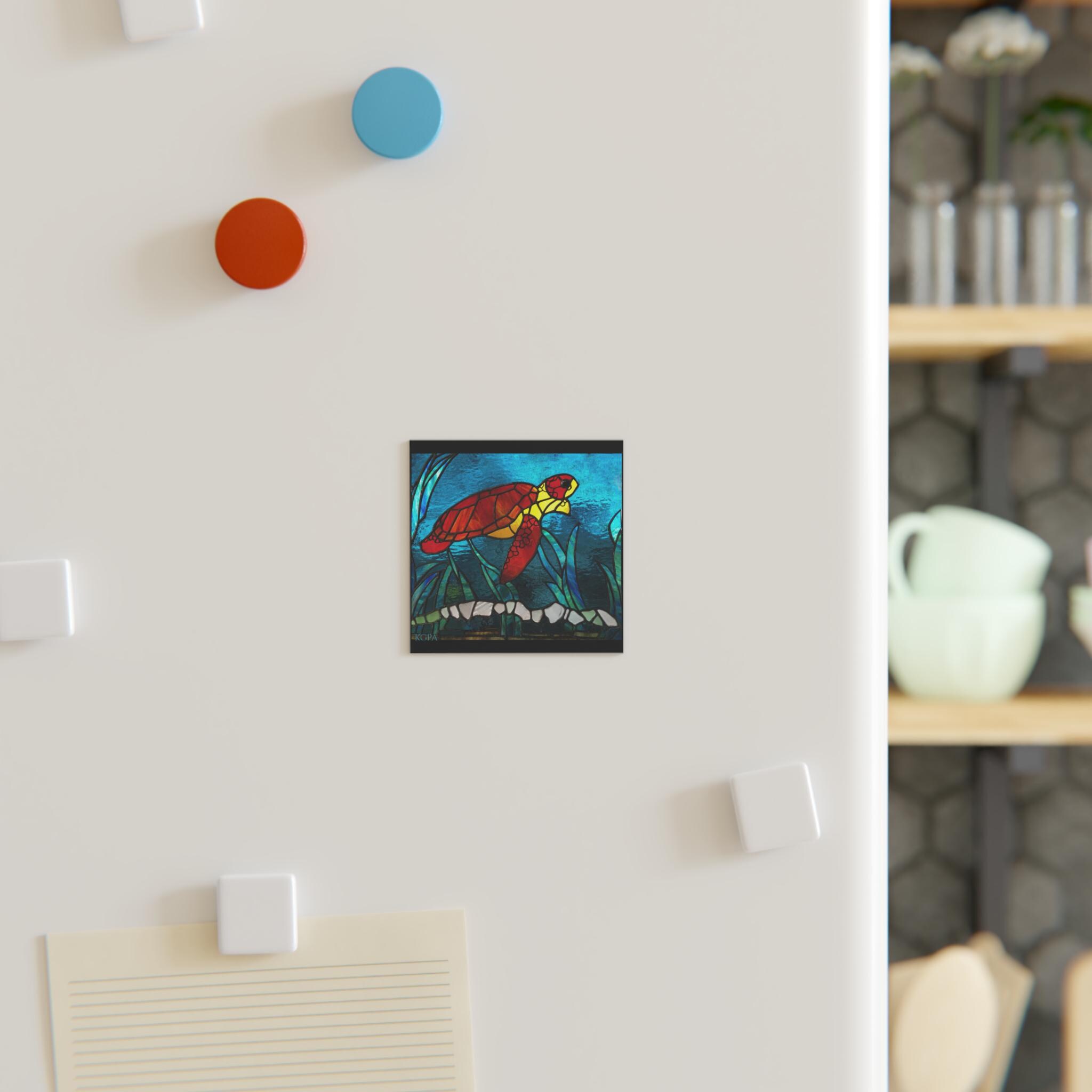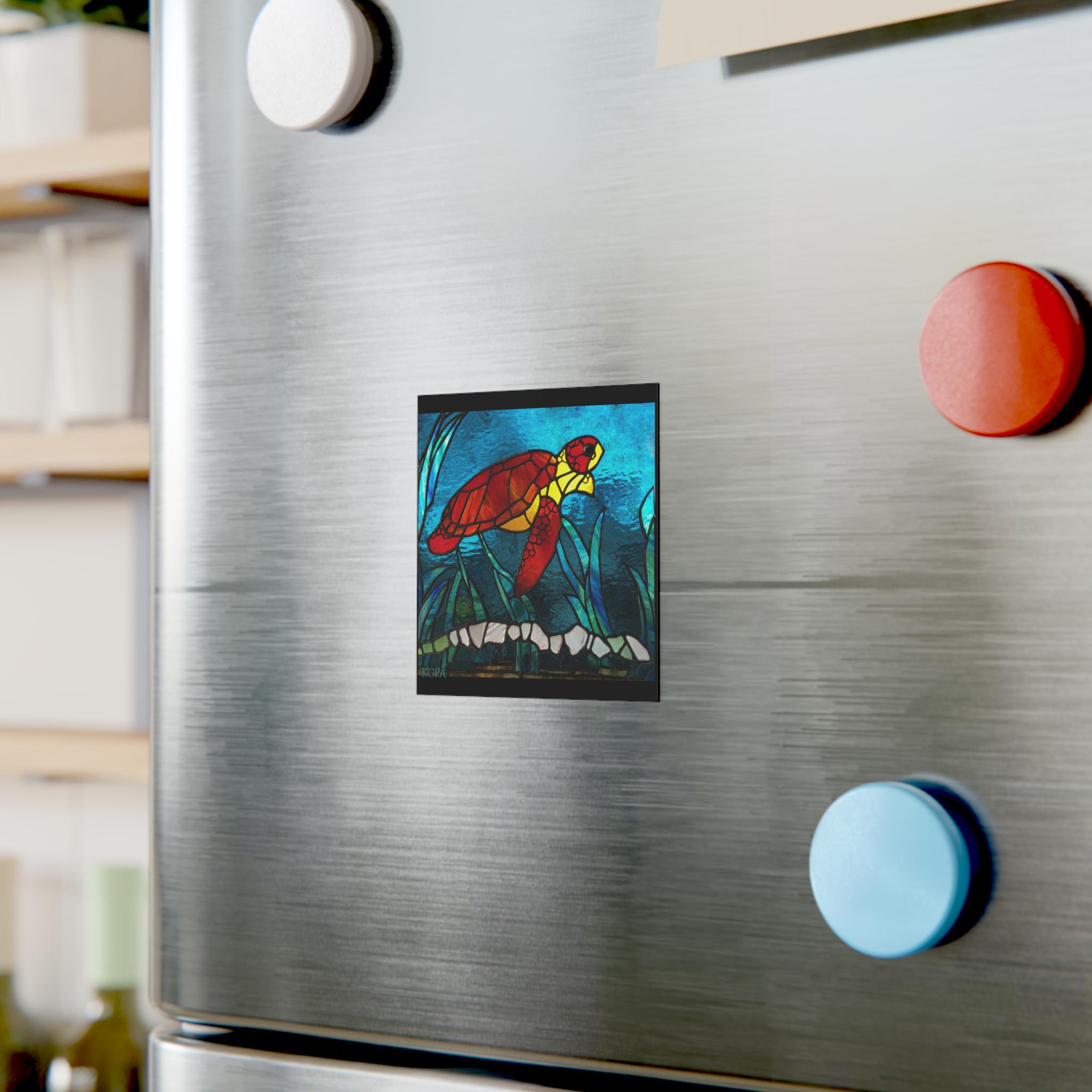 Sea Turtle Magnet: Glossy Square Art, Indoor/Outdoor Decor