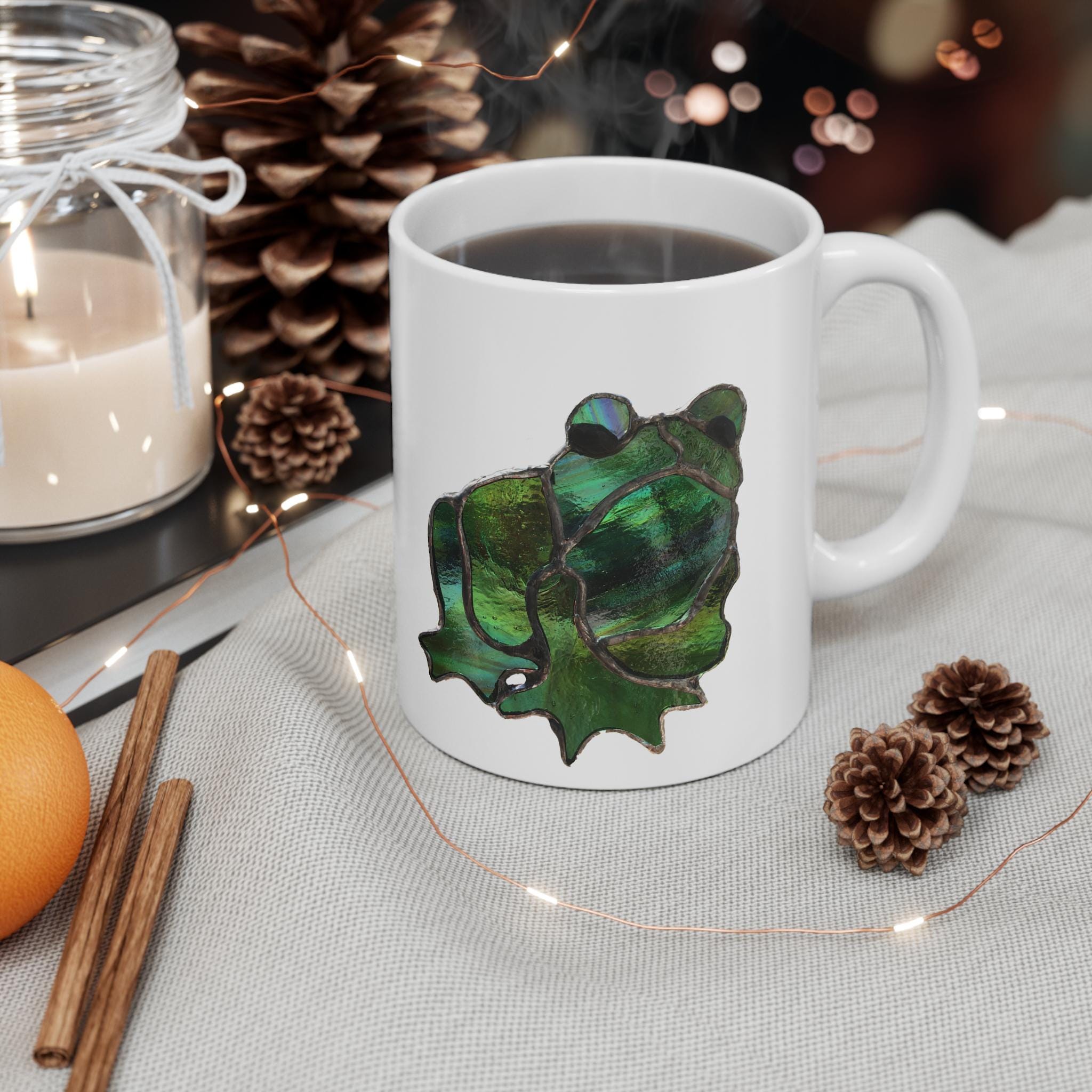 This grumpy frog mug features vibrant colors and a durable ORCA coating for a brighter color transfer. It is microwave and dishwasher safe with a large handle for easy gripping. Perfect for animal lovers and those who appreciate cute and funny designs. Ideal for everyday use or as a gift for birthdays, holidays, or special occasions.