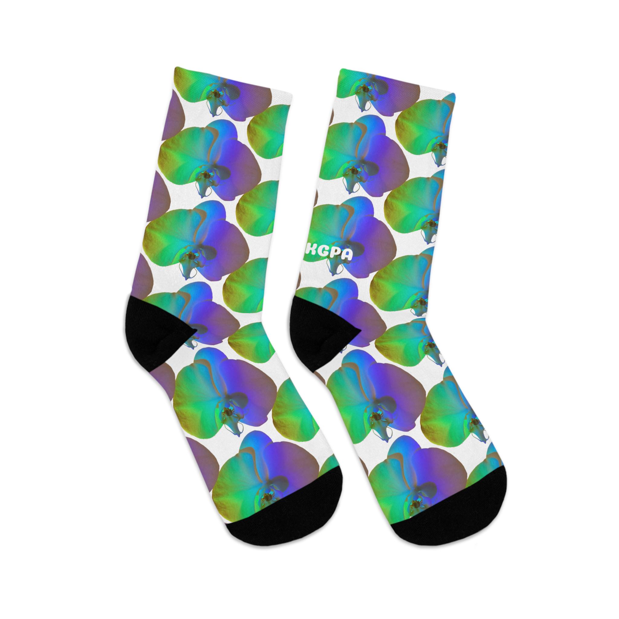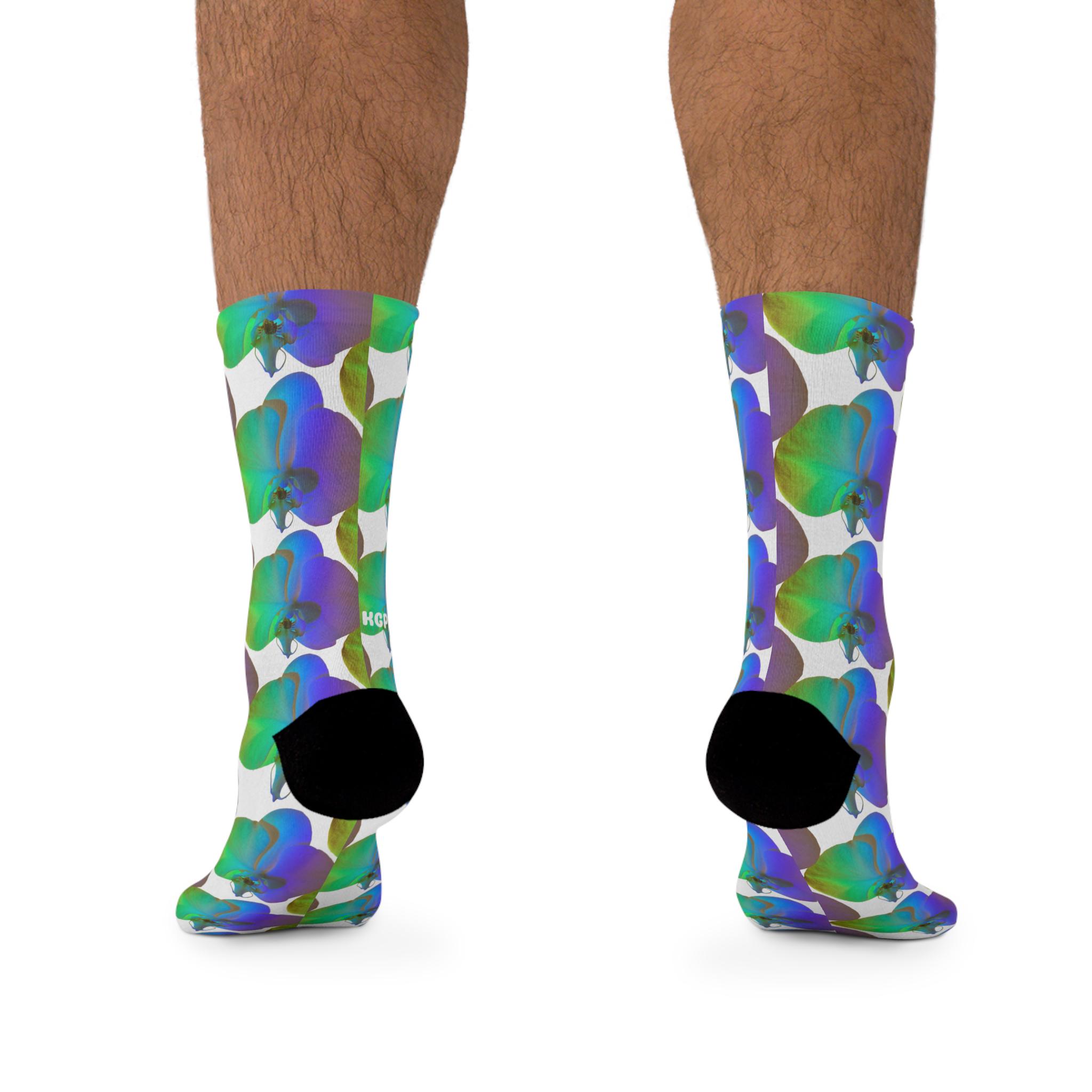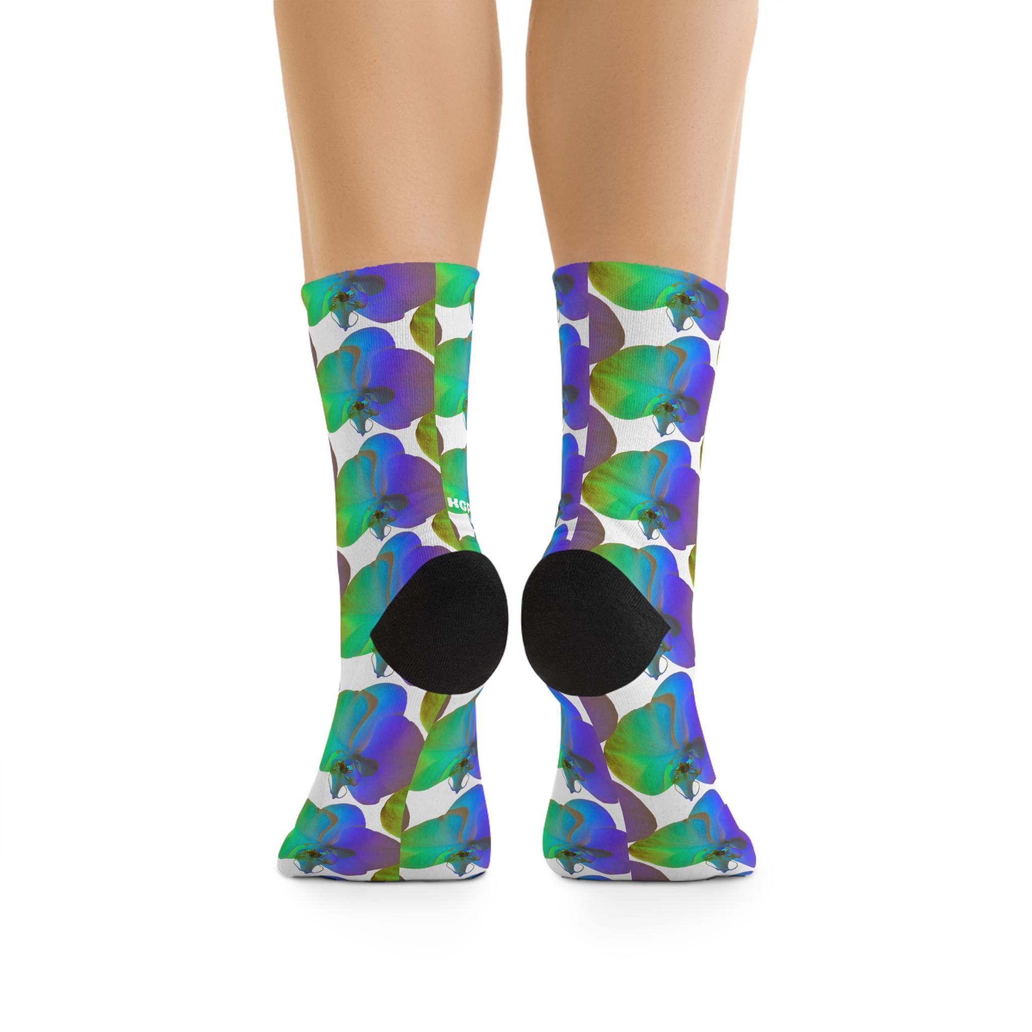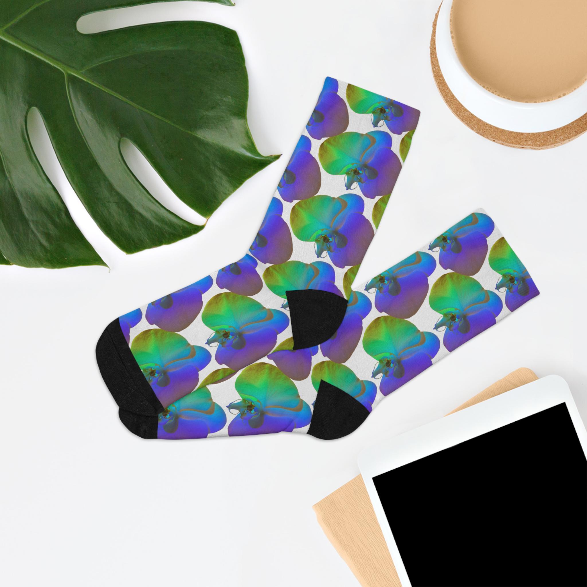 Blue Green Orchid Socks | Recycled Poly Floral Crew Socks